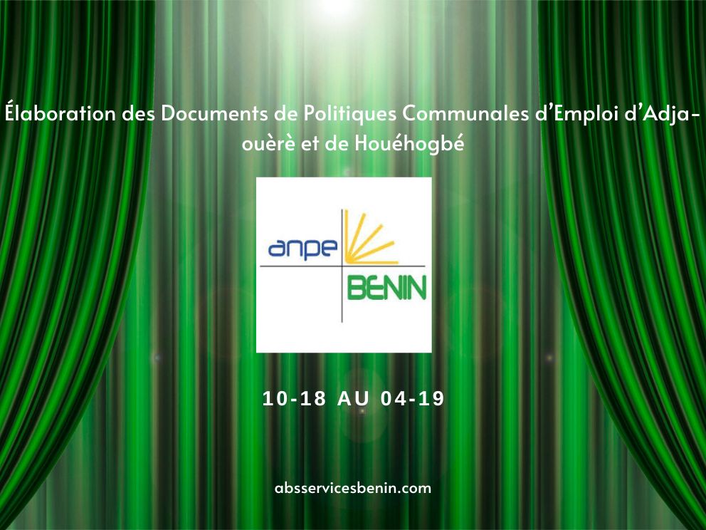 Agence Nationale Pour l’Emploi (ANPE) Bénin Elaboration des Documents de Politiques Communales d’Emploi d’Adja-ouèrè et de Houéhogbé: Diagnostic de la situation de l’emploi de la commune dans une approche...